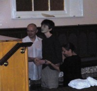 After the baptisms I was able to give Thomas a big hug and then had to go off to do Ministerish things, so was not able to talk much to him at that time. It was probably a good thing because some friends of his had come to support him and he wanted to spend some time with them.