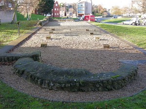 This morning I gathered with fellow Christians from Colchester at the site of one of the earliest Christian churches in the country: dating from the first half of the fourth century AD. It is St Helena’s Day today and it is believed she founded that church. She was also the mother of the first Christian Roman Emperor, Constantine, and is the adopted saint of the town of Colchester. A statue of her sits on the top of the Town Hall, as she faces towards Jerusalem holding a cross aloft. That cross is the highest point in the town. At the church (picture from Peter Herring, one of the service is below) we shared Communion together, led by the Bishop of Colchester. The liturgy was a little more formal than last night, but it was moving nonetheless: made poignant by the sound of the traffic going alongside us and the presence of a police station adjacent to the site of the church.