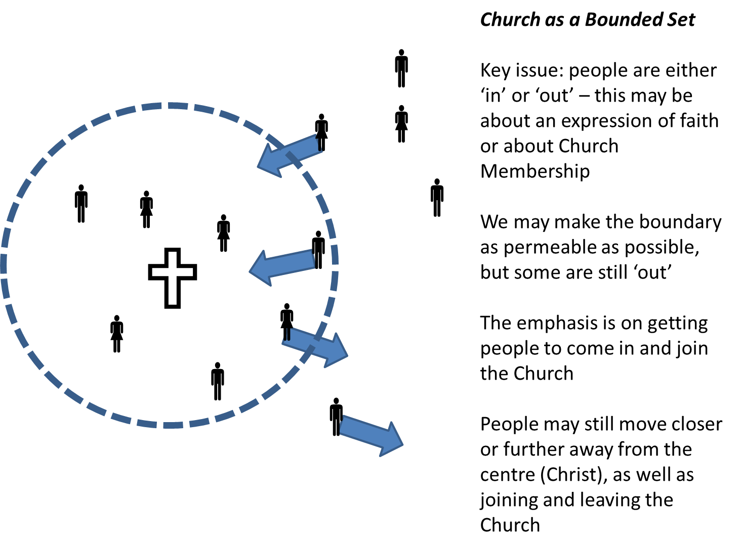 But Jesus operated an unbounded set. He invited people to follow him not to join his club. He was attractive in the way he acted and treated people and in the words he used. He was inclusive, reserving his words of condemnation for the religious elite who were operating a bounded set mentality.