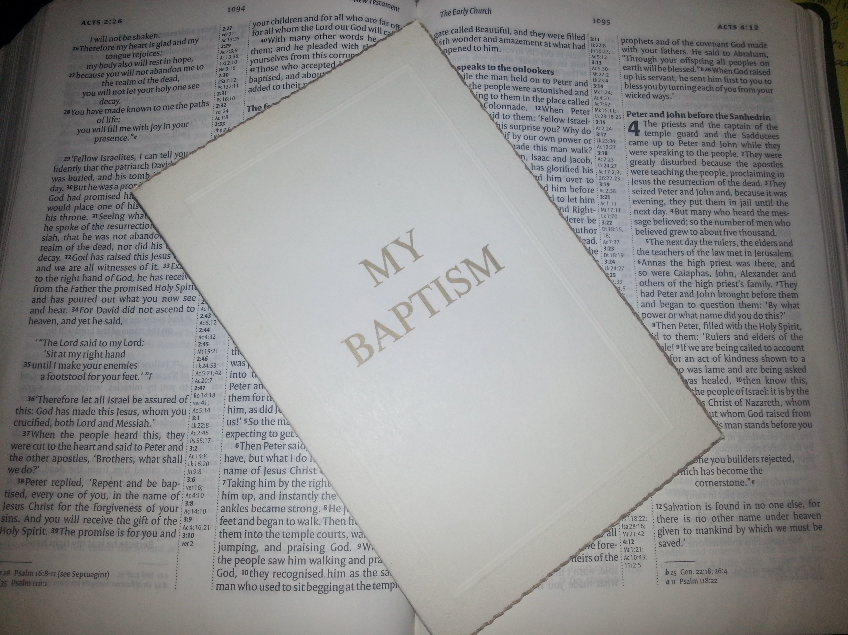 I can’t remember too much about the baptism itself, it happened rather quickly. Our two Ministers, Peter and Nick plunged me under the water and back up again “on my profession of faith in Jesus.” Then they read out a Bible verse that they had chosen for me which they felt was appropriate.