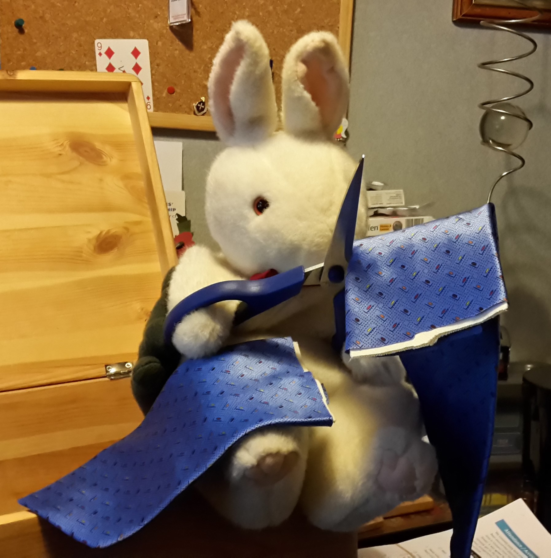 They thought it was even funnier when Stew confessed that he had not read all of the instructions. He had only read as far as ‘cut the tie’. So we were left with a severed tie.