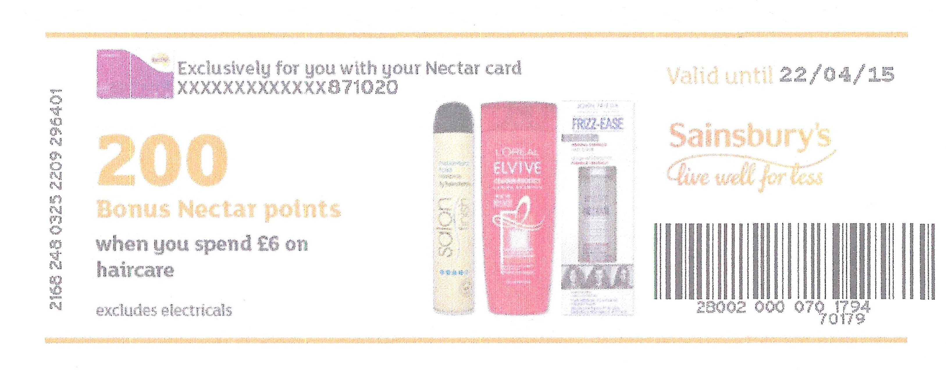 If you can’t make it out, it’s offering me bonus points when I spend £6 or more on haircare. If you are wondering why that surprised me, have a look at my photo on the ‘heart of the matter’ section of this blog.